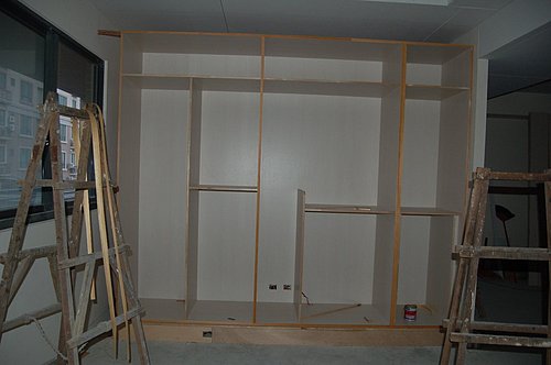 這樣的修正又讓油漆師傅哇哇叫, 還好師傅的功力深厚, 還是把櫃體的色彩調到非常相近.
