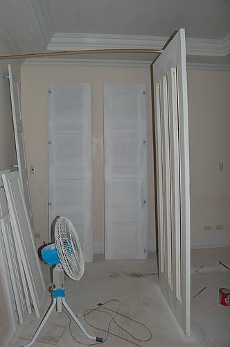 油漆工程是我們家裝潢工程的敗筆, 因為總覺得師父的工不夠細膩. 尤其是門片線板噴漆前補土的處理, 瑕疵很多!