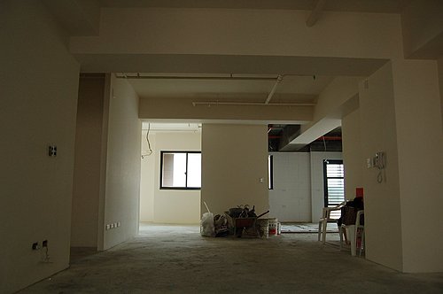 2008/10/13~14 超耐磨地板施工完成後,因為花園還未施工, 所以馬上就被覆蓋了起來, 未能及時拍照, 因此拖到現在才呈現.